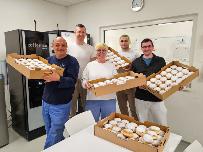 Insgesamt 160 Stück haben wir heute an alle unsere Mitarbeiter verteilt, unglaublich wie groß wir gewachsen sind! Selbst das ist Grund genug zum Feiern.